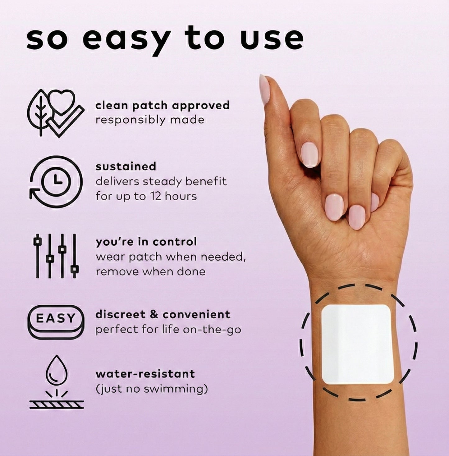Wear: Leave on for up to 12 hours. The patch is designed to move with you.